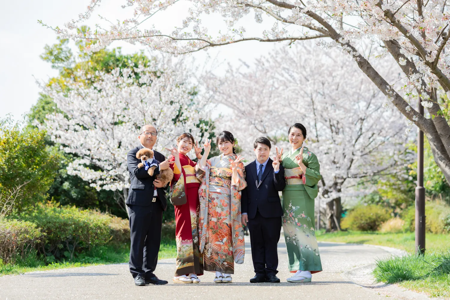 屋外なのでゆったりと余裕を持っての撮影が可能です。人数が多くても撮影しやすく、ご家族やご友人と一緒の思い出を残せます。